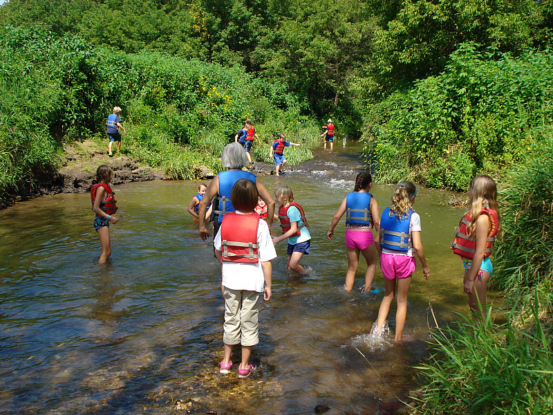 In this photo, the children walk a local creek as an analog for exploring a strange, new world and looking for biosigns.